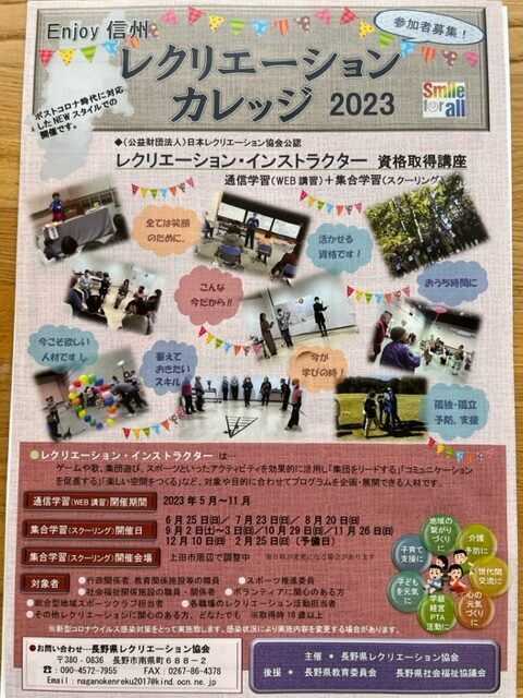 Enjoy信州レクリエーションカレッジ 2023年2月15日 最終更新日時 : 2023年2月15日 admin Afterコロナの新時代「TUNAGE!プロジェクト」で人を、地域を繋ぐ、プログラムを提供します。 ブラッシュアップご一緒しましょう。 Bluesky
